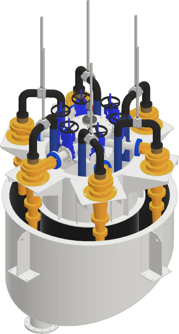 That's where the hydrocyclone cluster comes in: a parallel array of hydrocyclones fed by a common manifold, engineered to deliver consistent, accurate separation across your full production volume.